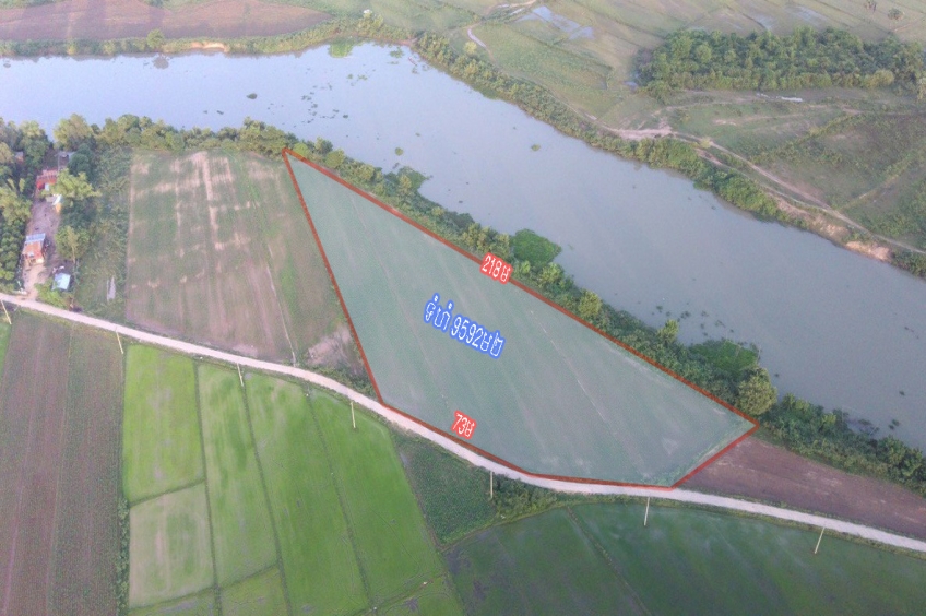 ដីលក់ ជាប់ទន្លេមេគង្គ ក្បាលជាប់ផ្លូវជាតិលេខ១១ 40x120 ម៉ែត្រនៅក្រុងអ្នកលឿង ខេត្តព្រៃវែង