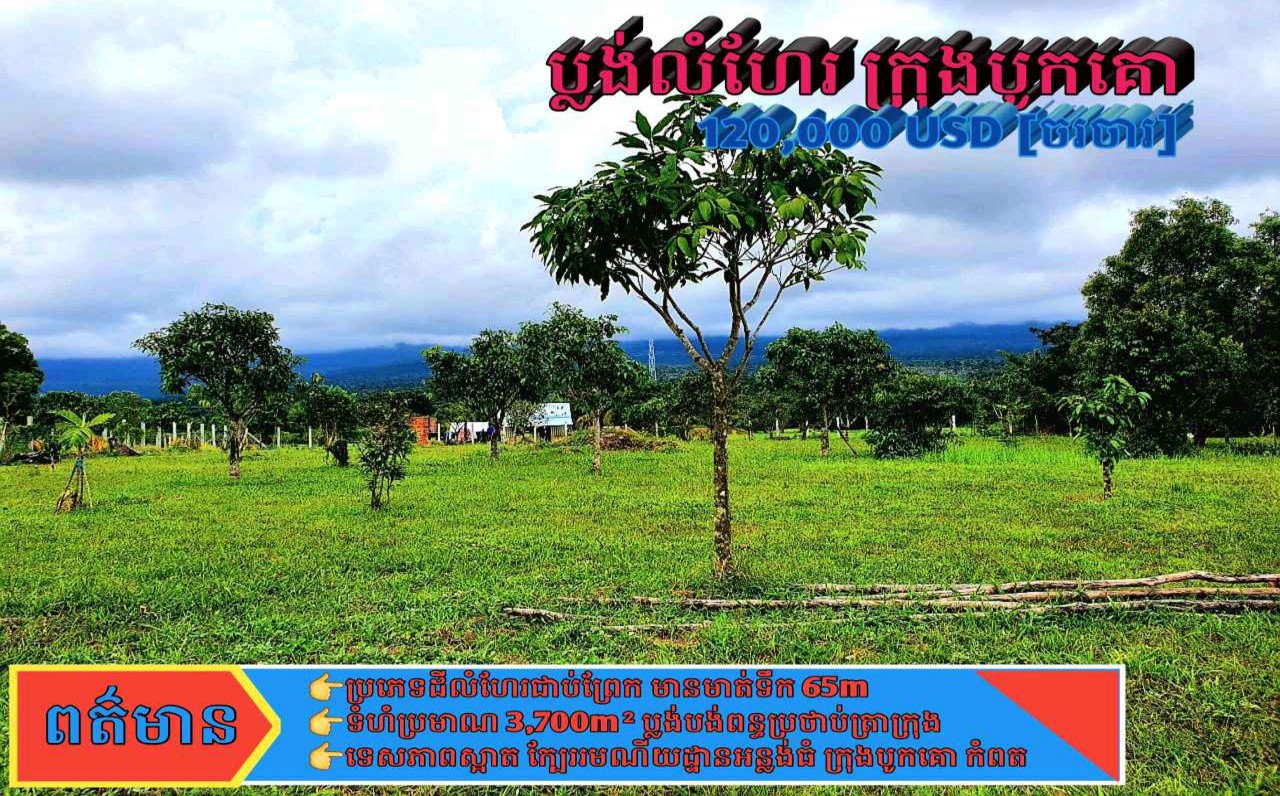 ដីលំហែលក់ទំហំ3700m2សិត្ថក្នុងក្រុងបូកគោ ខេត្តកំពត