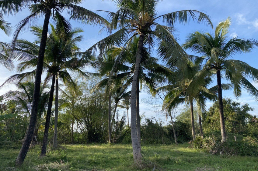ដីចំការដូង ទឹកដោះគោ ខ្នុរ លក់ជាប់ព្រែកព័ទ្ធជុំវិញ ទំហំ៥០០០ម២ ប្លង់រឹង Plantation land with river front 5000m2 for sale