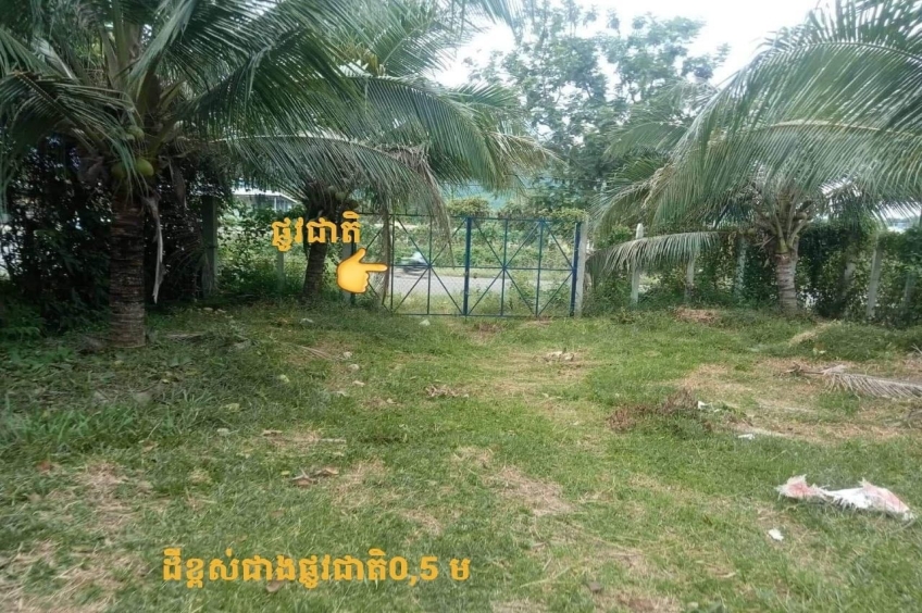 ដីជាប់ផ្លូវជាតិលេខ3 ក្នុងតំបន់កំពង់ផែរអន្តរជាតិនិងសេដ្ឋកិច្ចពិសេសគីឡូ12 កំពត 1kmពីក្លោងទ្វារបូកគោ