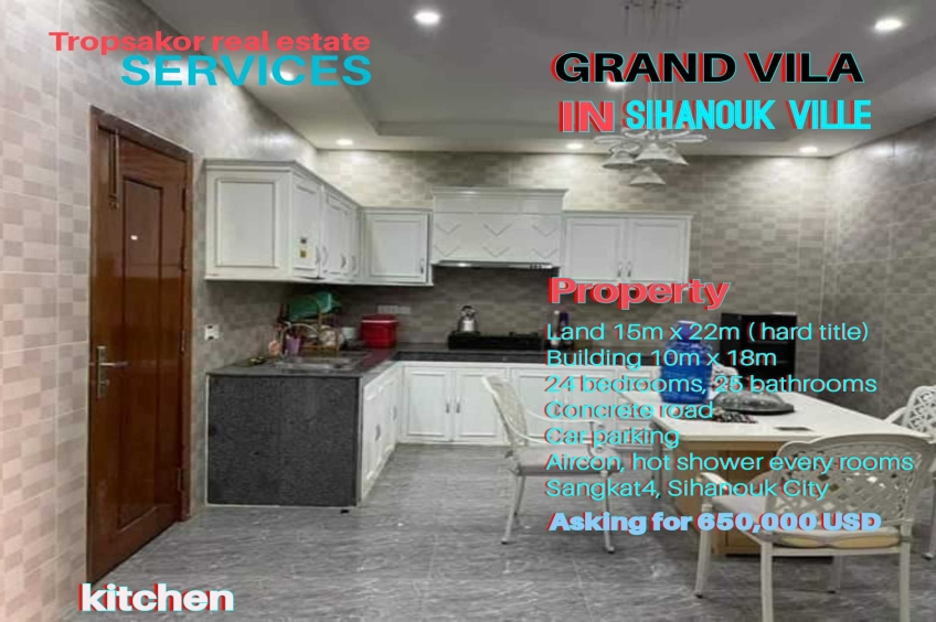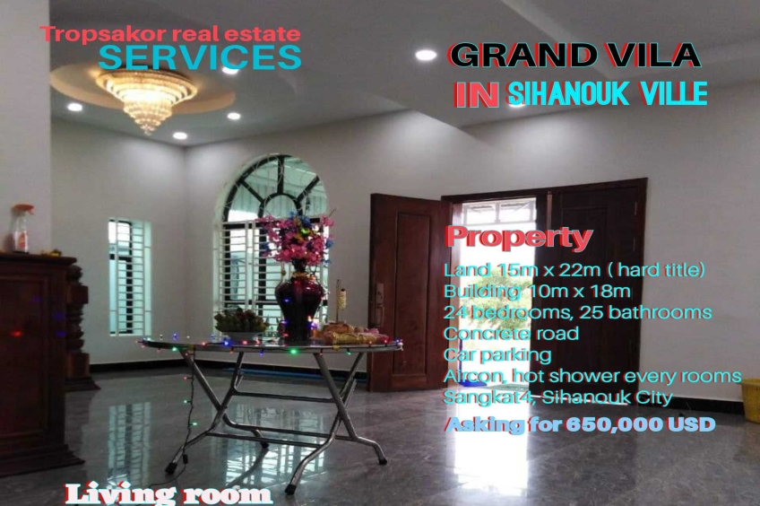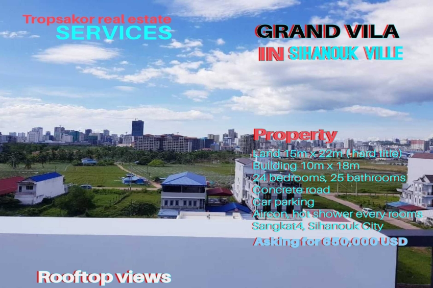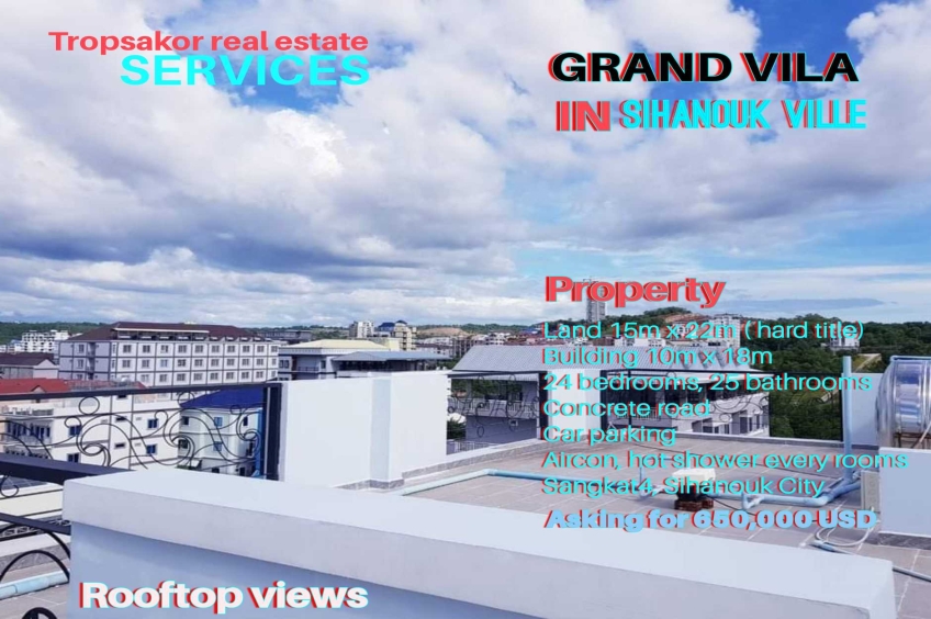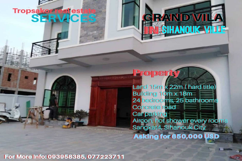 Building for sale in Sihanouk ville. asking for only 650,000$ ! 24 bedrooms posible to run a small guesthouse. 330sqm in land tittle . For more info: 077224711 , 093958385